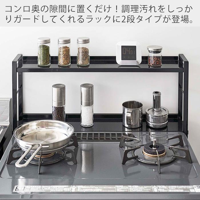 楽天市場 キッチン収納 山崎実業 Tower コンロ奥隙間ラック 2段 隙間収納 油はねガード 汚れ防止 収納ラック Yamazaki タワー ブラック 美しく暮らす C D F